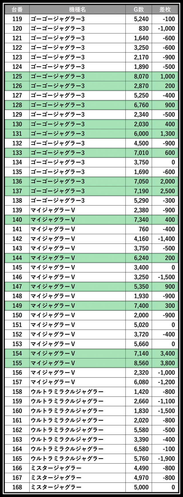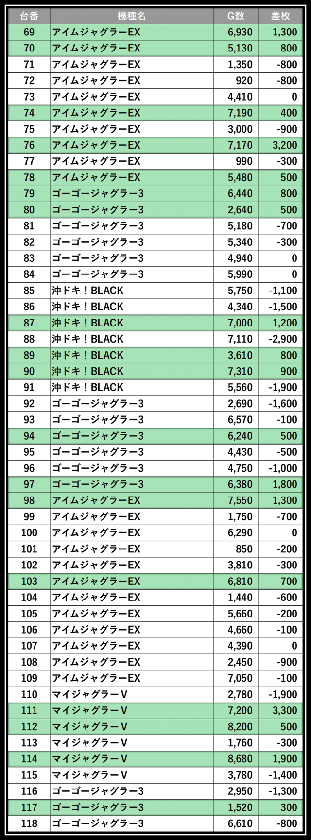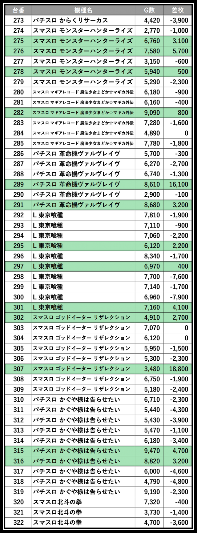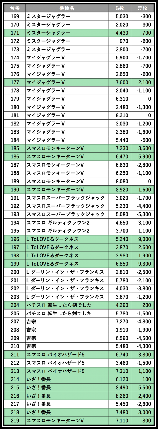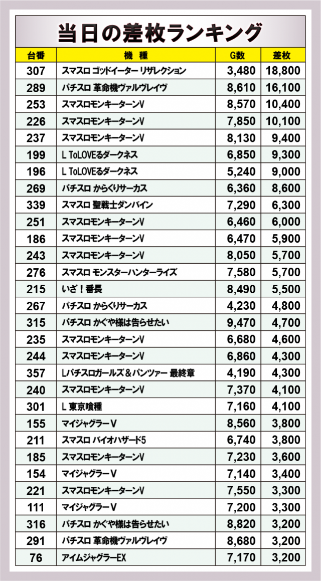 ※差枚数順に掲載しています。