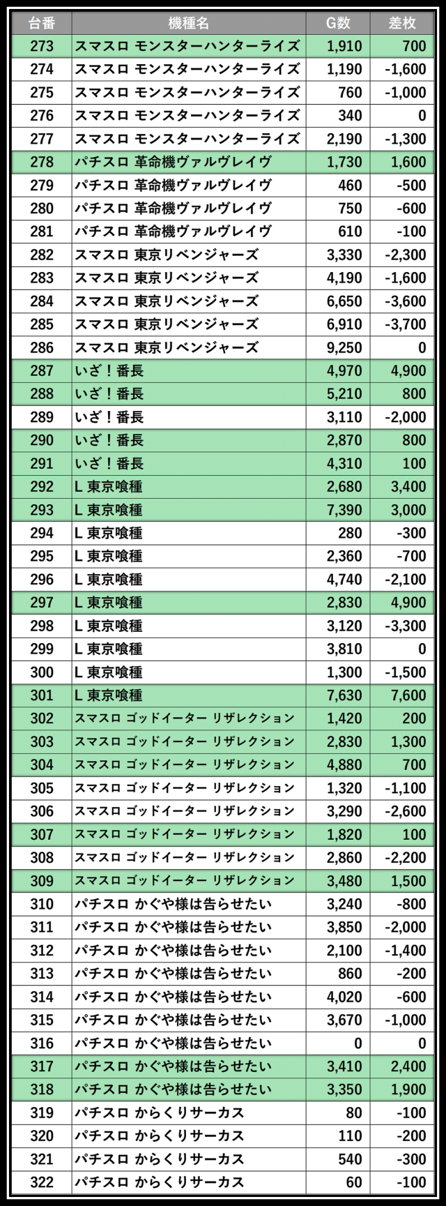 その結果の中から、ぱちタウンが注目すべきポイントを厳選してユーザーにお届け!プレイヤーが楽しんだ一日を下記データにて振り返ってみて欲しい。