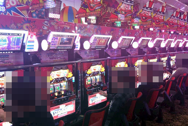 「マイジャグラーⅤ」や「ファンキージャグラー2」、「ハッピージャグラーVⅢ」などがにぎやかなムード。