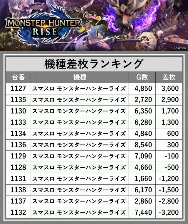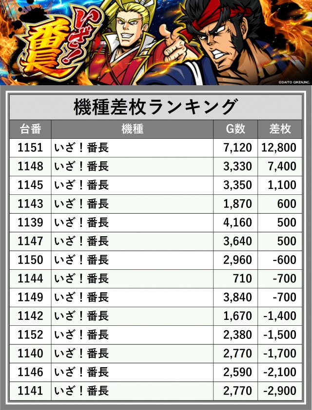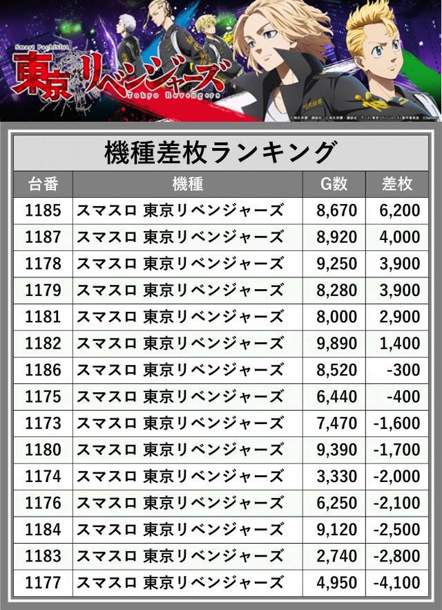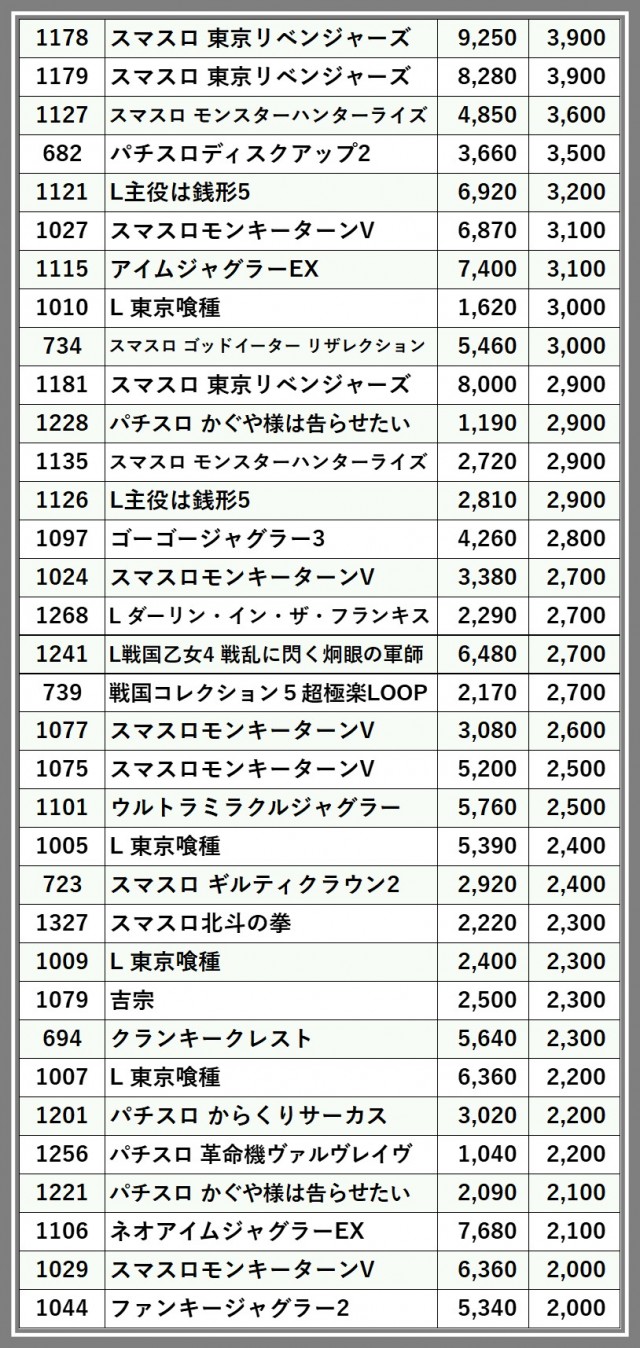 ※差枚数順に掲載しています