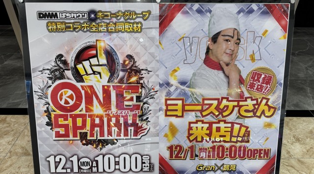 12月1日(月) グランキコーナ鶴見店にて、DMMぱちタウンの「ONE SPARK取材」を実施。