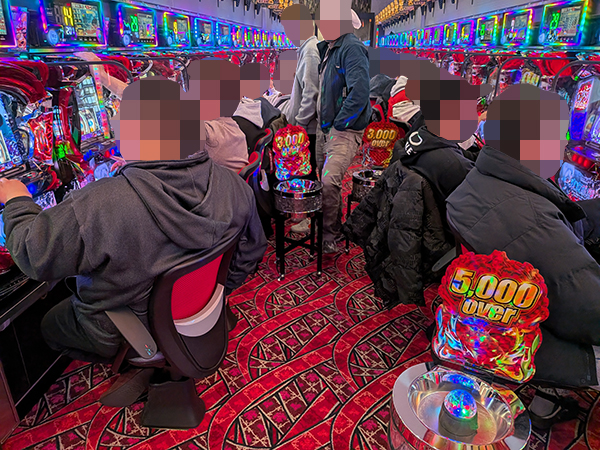 5.435円パチスロの支持も厚く、様々な機種で楽しそうにレバーを叩くプレイヤーが見られた。