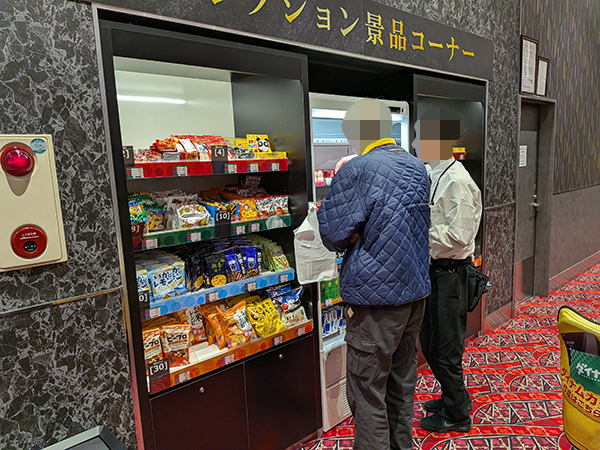 景品コーナーは豊富な品揃えで、お菓子やドリンク類など様々なアイテムが用意されていた。