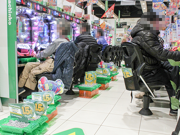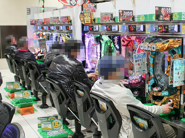 なかでも1.54円パチンコで活躍するプレイヤーが多く見られ、シマ全体が明るい雰囲気に包まれていた。