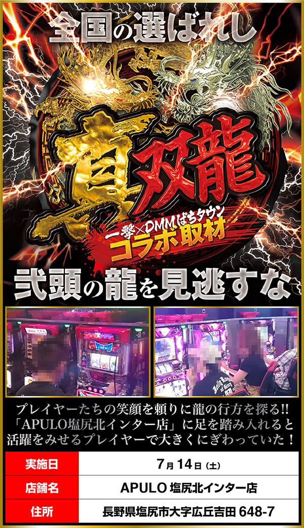 広々としたレストスペースを完備しており、1日を通して快適に過ごせる環境が整っている「APULO塩尻北インター店」を舞台に「真双龍」を敢行。