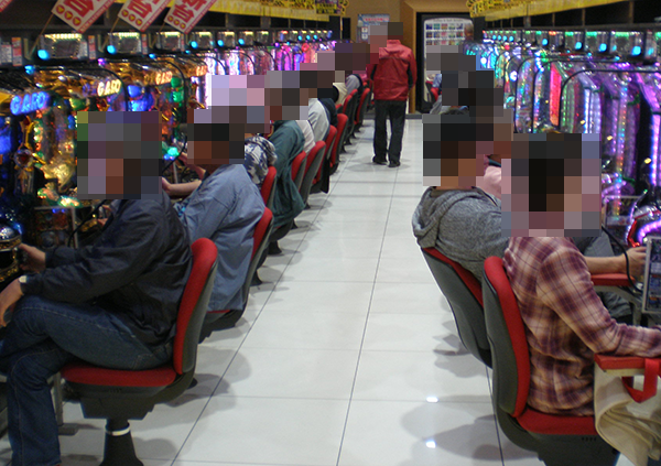 ジャグラーやハナハナシリーズといったボーナスタイプも、ほとんど満席。