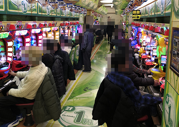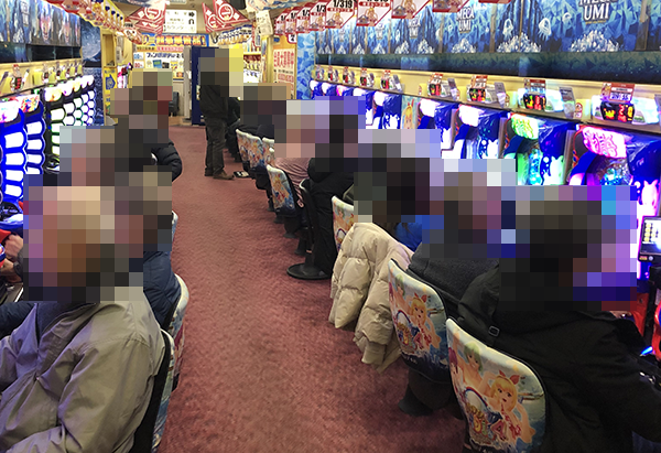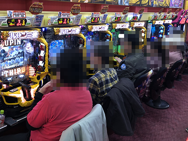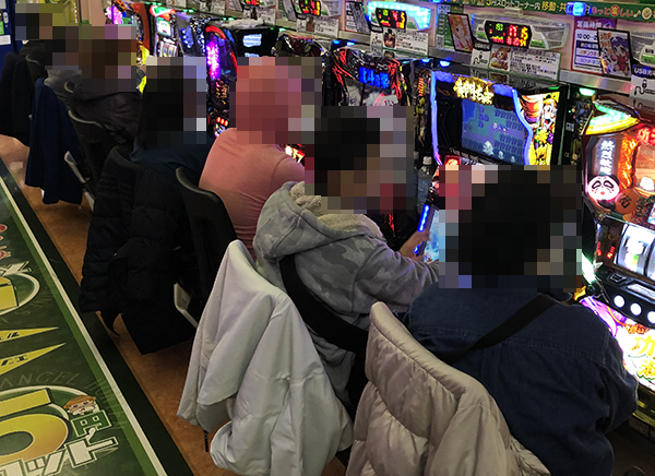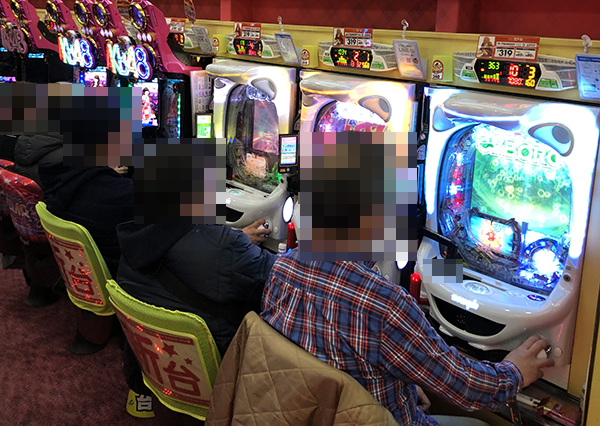 14時過ぎの500円/116玉パチンコでは、新台の「CR CYBORG009 CALL OF JUSTICE」が満席。うれしそうにハンドルを握っているプレイヤーの姿からは、有意義な時間を過ごしていることも伝わってきた。