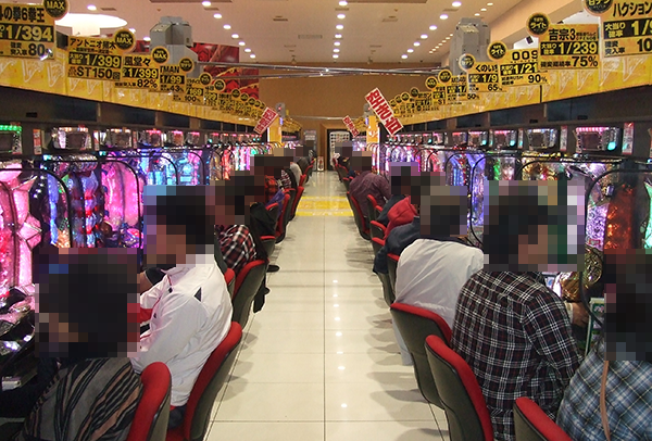 15時を過ぎた頃の4円パチンコでは、「CRビッグドリーム」や「CRぱちんこ仮面ライダー フルスロットル」といったMAXタイプが盛況。