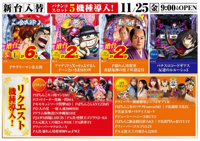 本日11月26日土曜日 ≪新賞品入荷予定≫