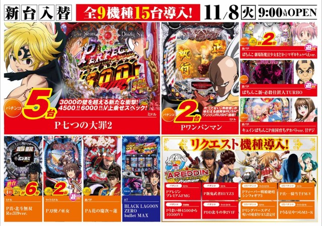 本日11月5日土曜日 ≪新賞品入荷予定≫