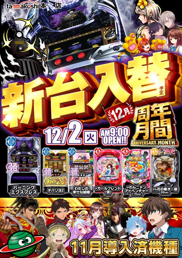 1位 11月15日(土) 2位 11月16日(日) 3位 12月5日(金)