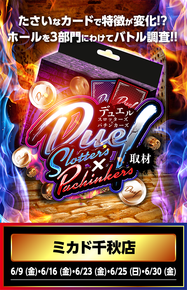 デュエルスロッターズ×パチンカーズ、ターゲットとなったのは「ミカド千秋店」。