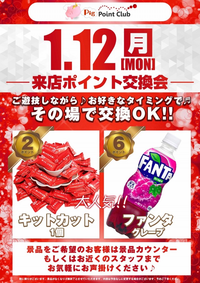📅1月12日(月)🥤来店ポイント交換会🍫