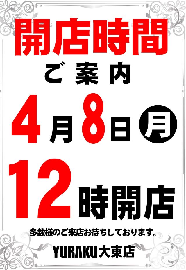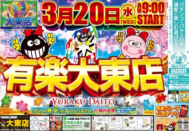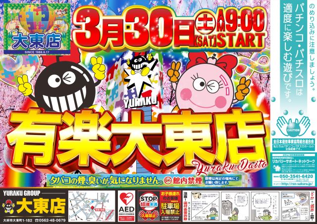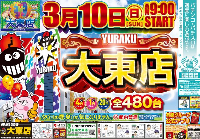 【有楽大東店】明日朝9時開店!