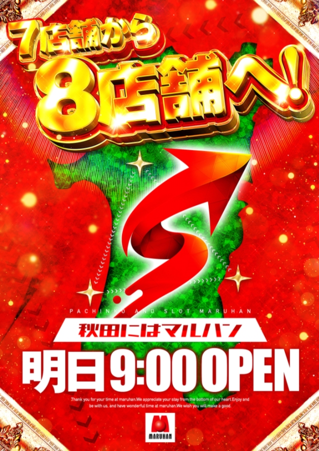 明日3月8日(水)秋田マルハン8店舗!あさ9時オープン!