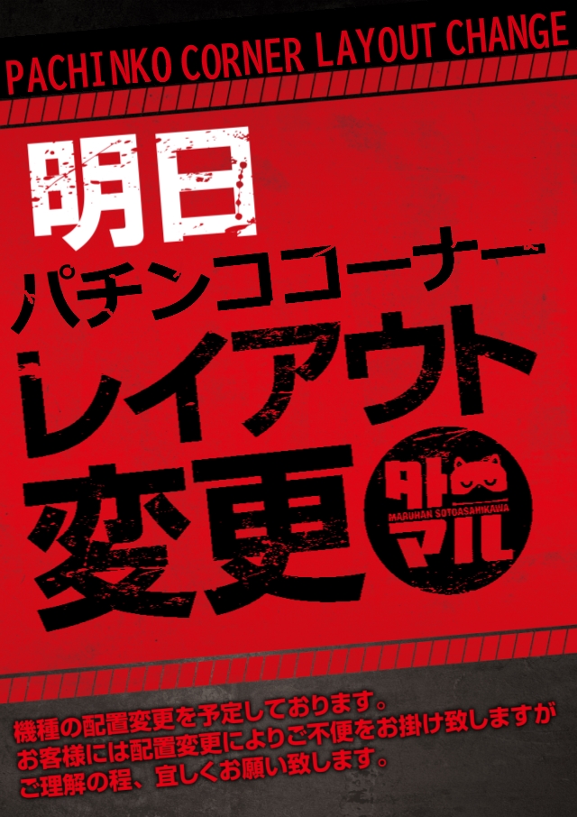 明日2月11日(金)パチンココーナーレイアウト変更!!