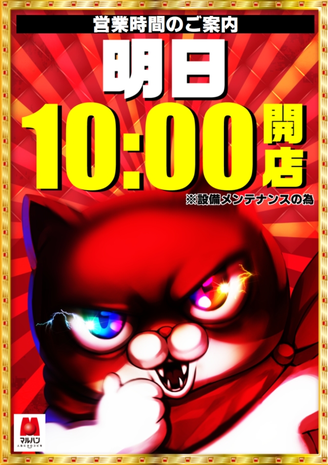 明日1月14日(金)朝10時オープン 設備メンテナンスの為
