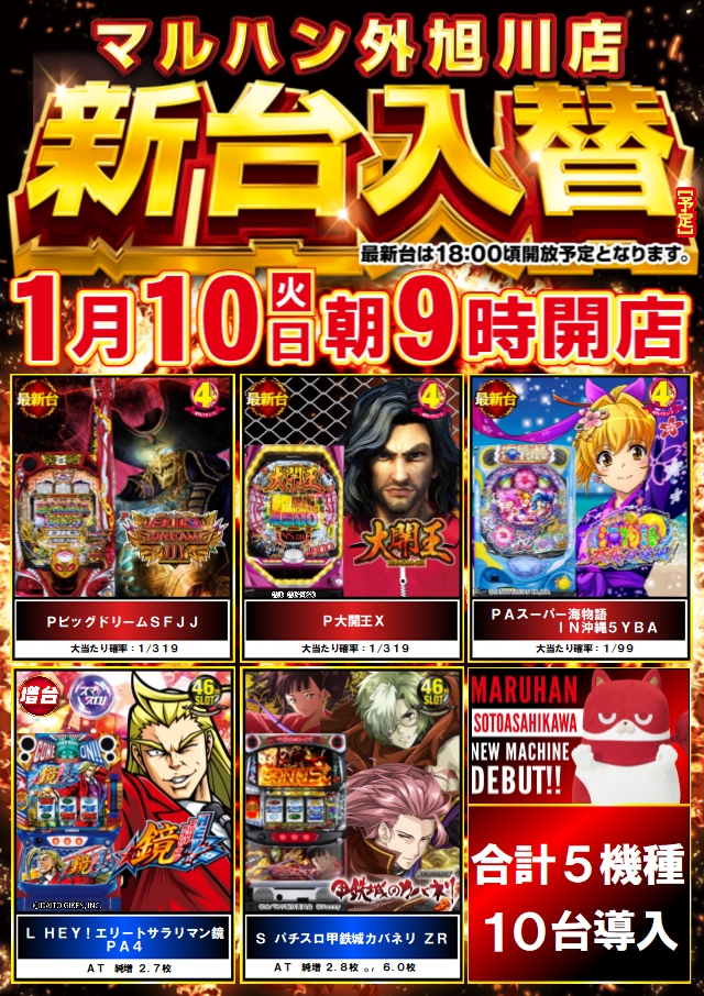 明日1月10日(火)外マルの新台入替&装飾変更(予定)