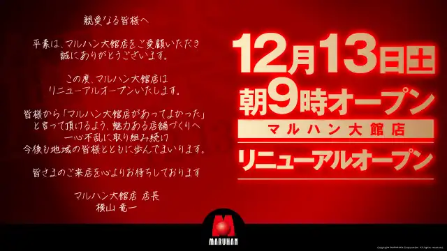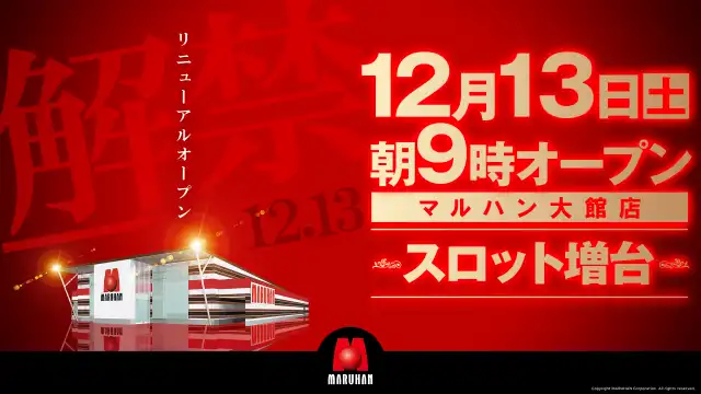 【マルハン大館店】本日11月27日(日)朝9時オープン!!