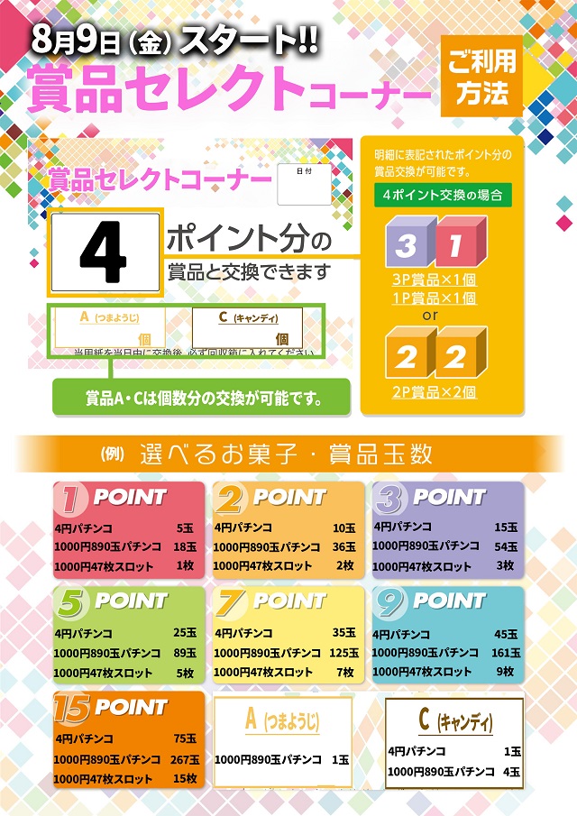 [パチ]4円 240台 1000円/890玉 80台 計320台 |