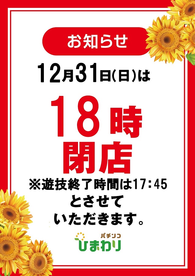 【大曲ひまわり 年末年始 営業時間のご案内】