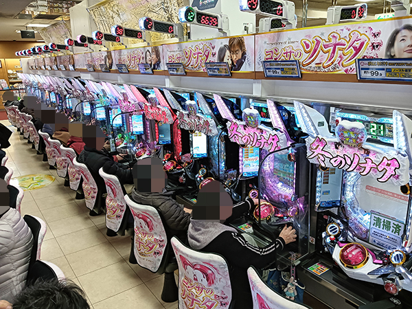15時ごろの1円パチンコでは「PA海物語3R2」や「ぱちんこ 冬のソナタ SWEET W HAPPY Version」、「ぱちんこ 冬のソナタ Remember Sweet Version」が盛況で、機種のポテンシャルをフルに活かすプレイヤーを複数確認している。