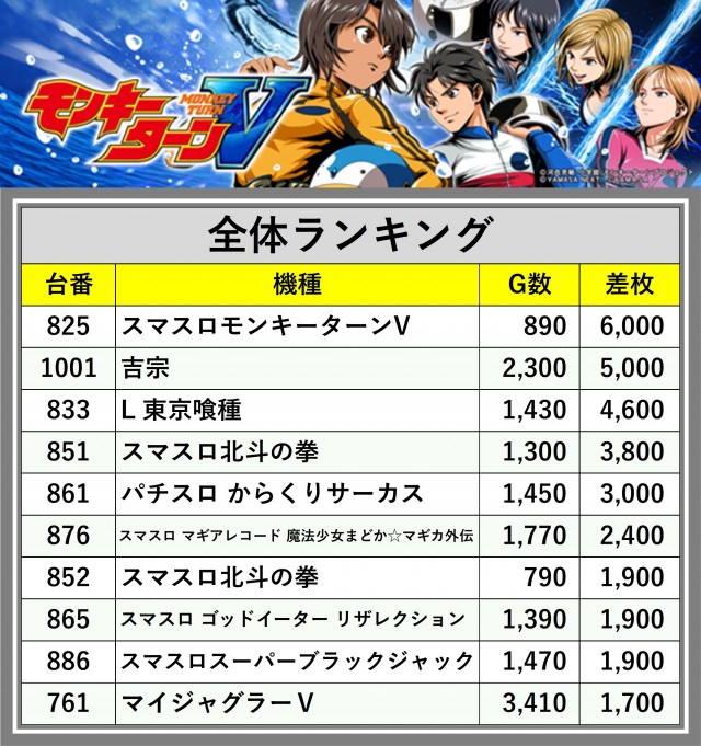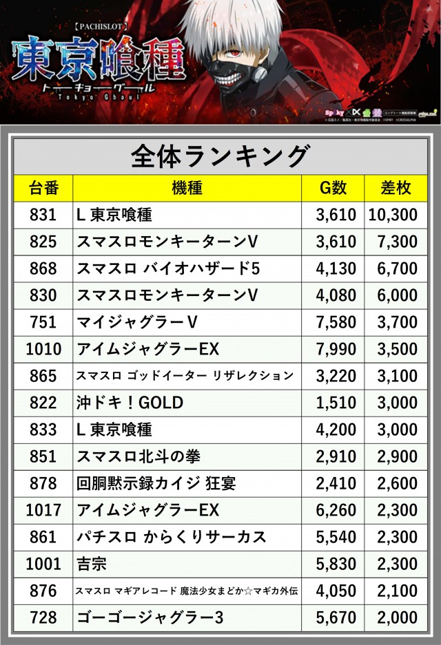 ※差枚数順に掲載しています