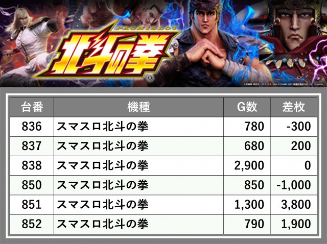 ※台番順に掲載しています