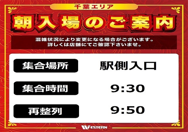 9:50までに駅側入口へお集まり頂いた方を対象に入場順番決めを行わせて頂きます。 |