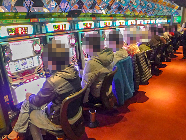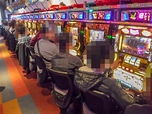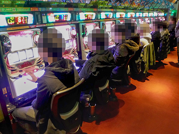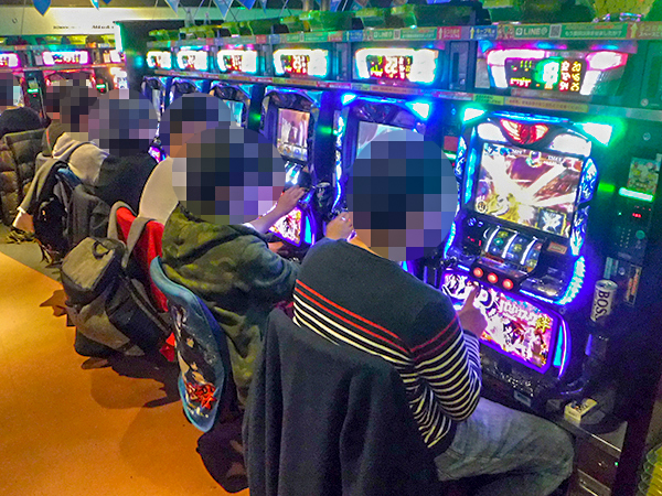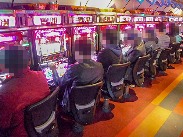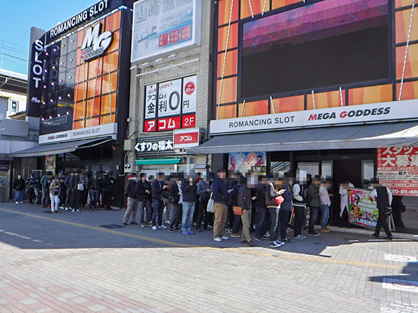 開店前から130人を超えるプレイヤーが足を運んでおり、遊技開始を前にして高揚した表情を見せていた。