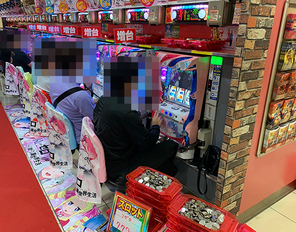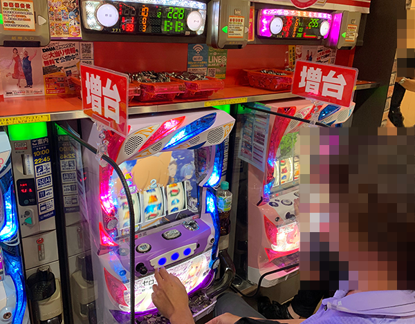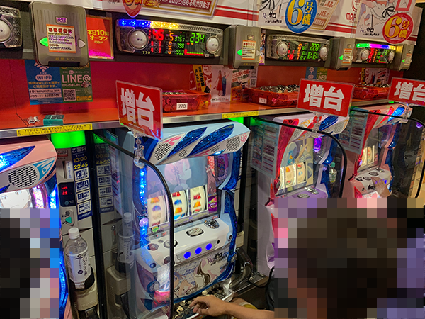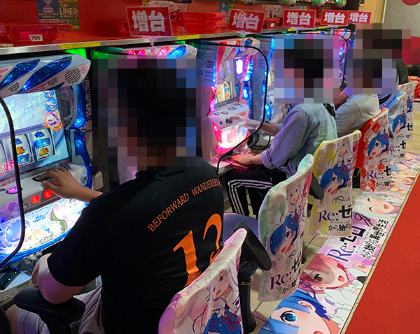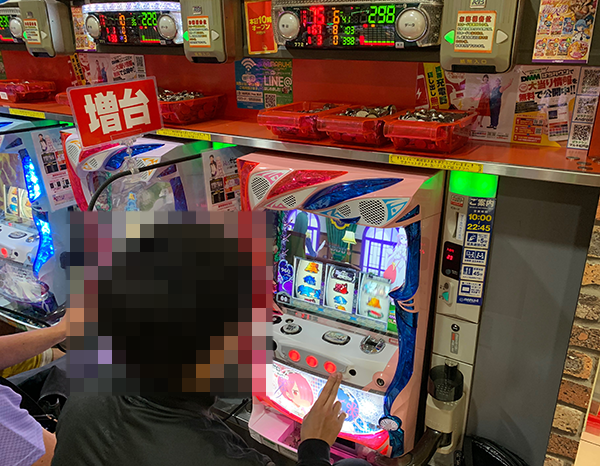ホール内を歩きながら目に飛び込んできたのは、遊技を楽しむプレイヤーたちの笑顔。とくにパチスロコーナーを包むムードが明るく、各所でステキなシーンを確認している。