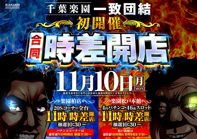 4パチ・20スロ:朝9:30から抽選開始 10スロ・5スロ:朝9:30から先着順配布 |