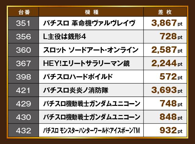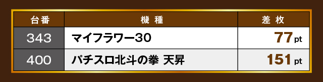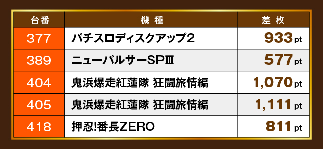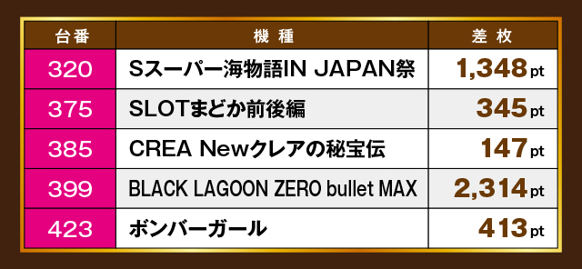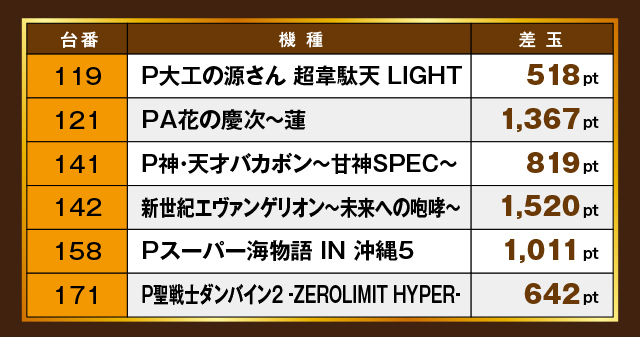 今回の「ウエスタン佐倉店」の結果は全国制圧。前回は惜しくも五カ国制圧で終わった「佐倉店」だが、今回はそのフラストレーションを晴らすかのごとく、しっかりと全国を制圧するに至った。様々な機種から優秀台を思わせる結果が生まれており、常連ユーザーの期待に応えてくれた!