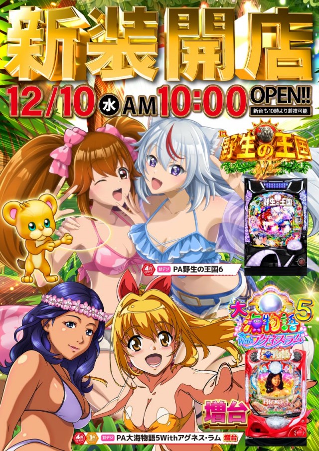 本日新装開店🌟野生の王国6導入💗4&1ぱちアグネス5甘増台🎵