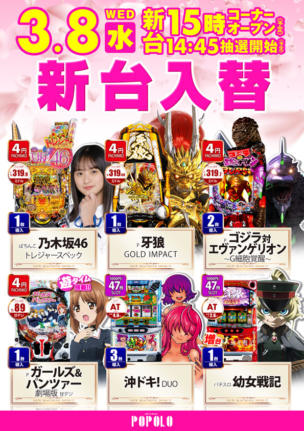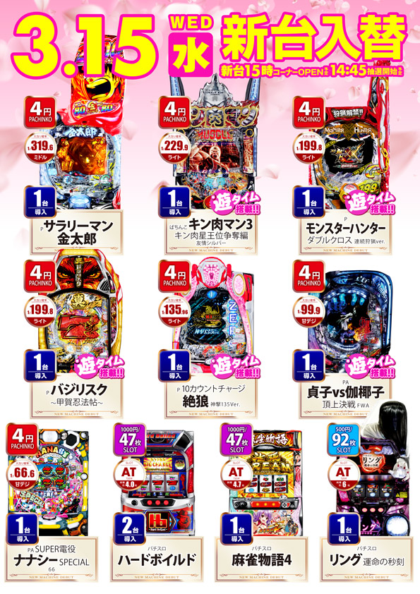 3月15日新台OPEN予定🌟🌟詳細はこちら👈👈👈