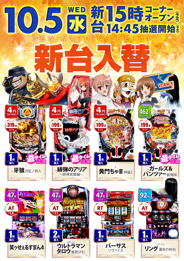 \ 本日15時新台オープン予定 /