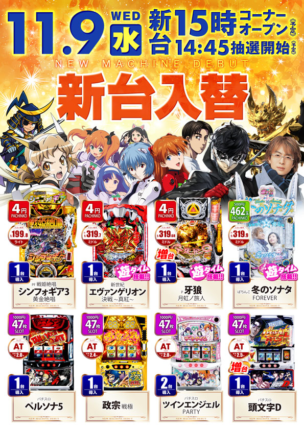 11月9日新台OPEN予定🌟🌟詳細はこちら👈👈👈