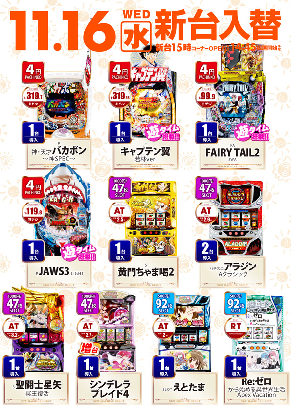 11月16日新台OPEN予定🌟🌟詳細はこちら👈👈👈