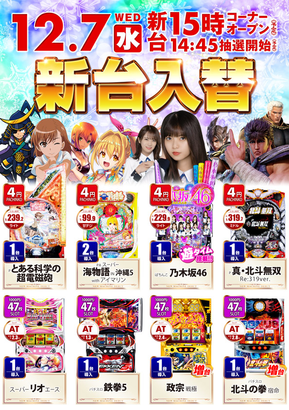 12月7日新台OPEN予定🌟🌟詳細はこちら👈👈👈