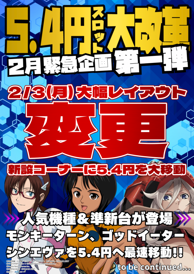 そして5.4円スロット大幅レイアウト変更!!!