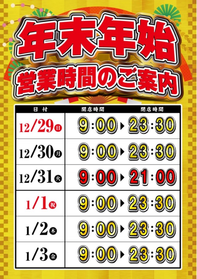 ☆朝9:00オープン・新年あけましておめでとうございます☆