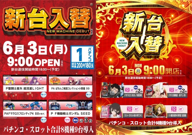 4/8(月)新台入替~PFパワフル4台等計7機種導入予定