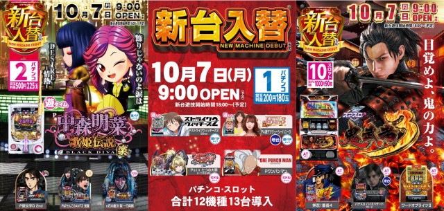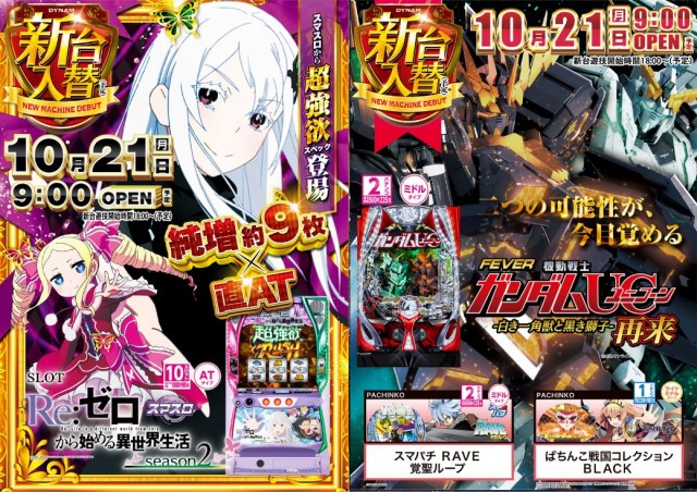 明日10/21(月)新台入替~スマスロリゼロ等4機種導入予定