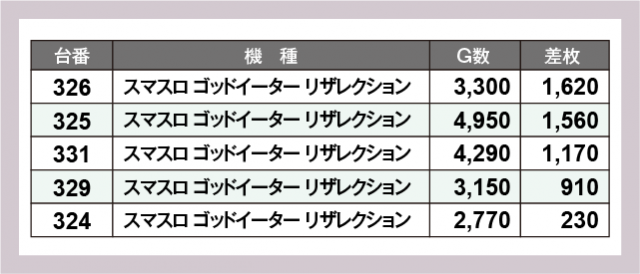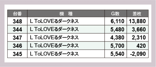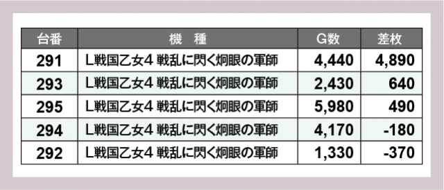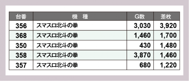 ※差枚数順に掲載しています