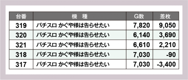 ※差枚数順に掲載しています