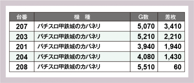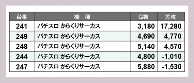※差枚数順に掲載しています