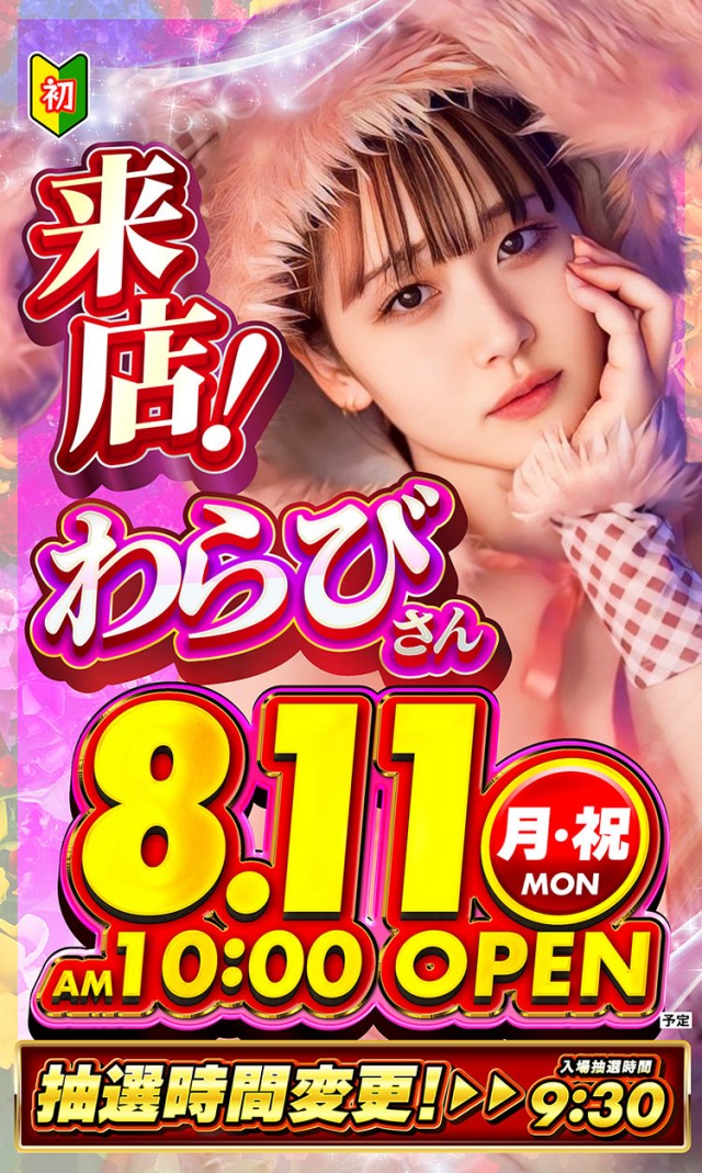 😊8月11日 (月・祝) わらびさん🔰初来店!