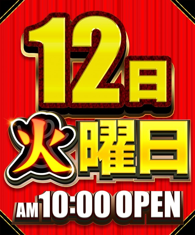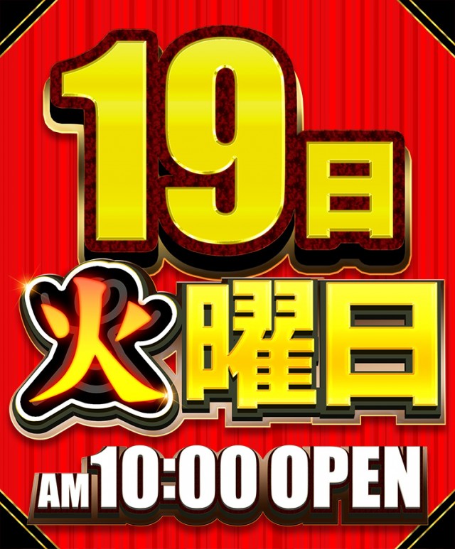 😄 19日 火曜日 10時オープン! 新台稼働開始! 😄