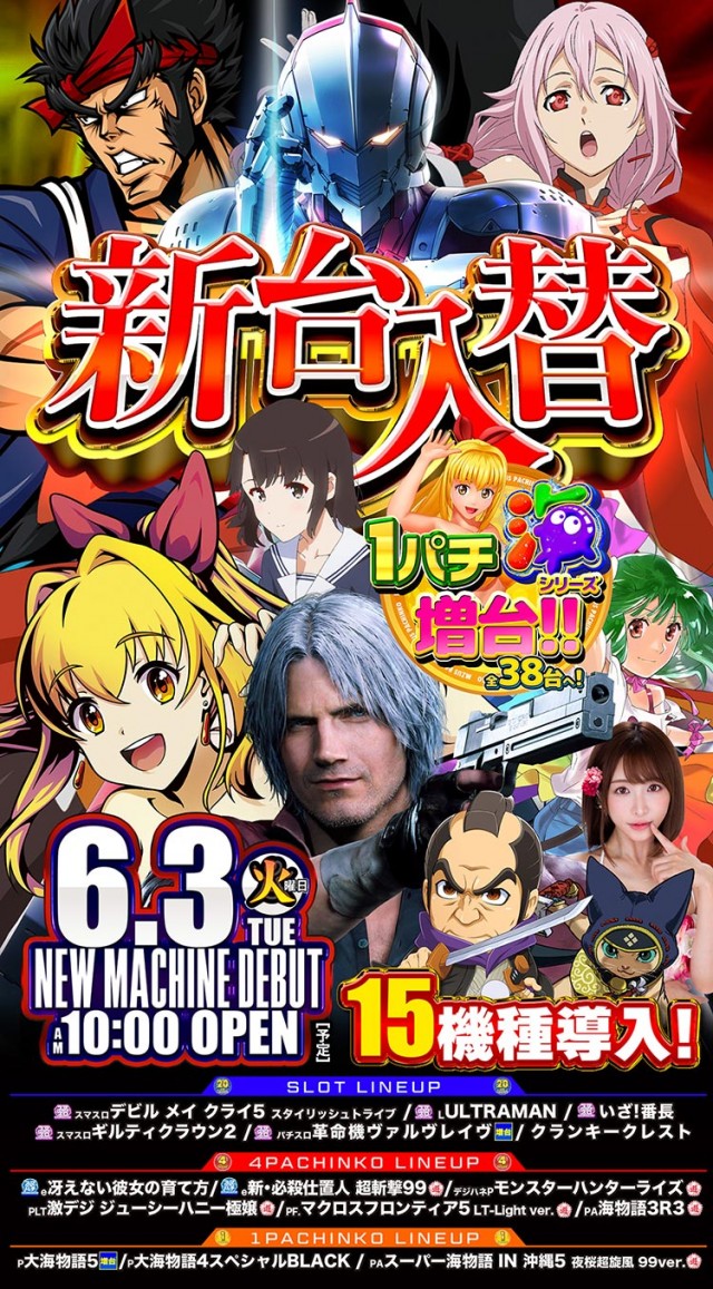 😁3日(火) 新台入替 & 望月咲さん来店!🐤