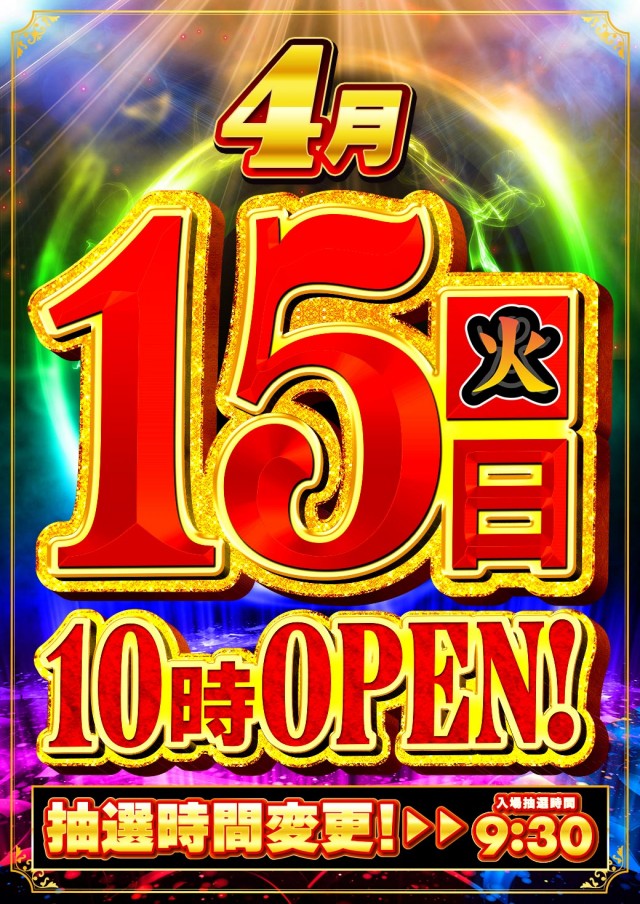 😄 4月15日 火曜日 10時オープン! 😄